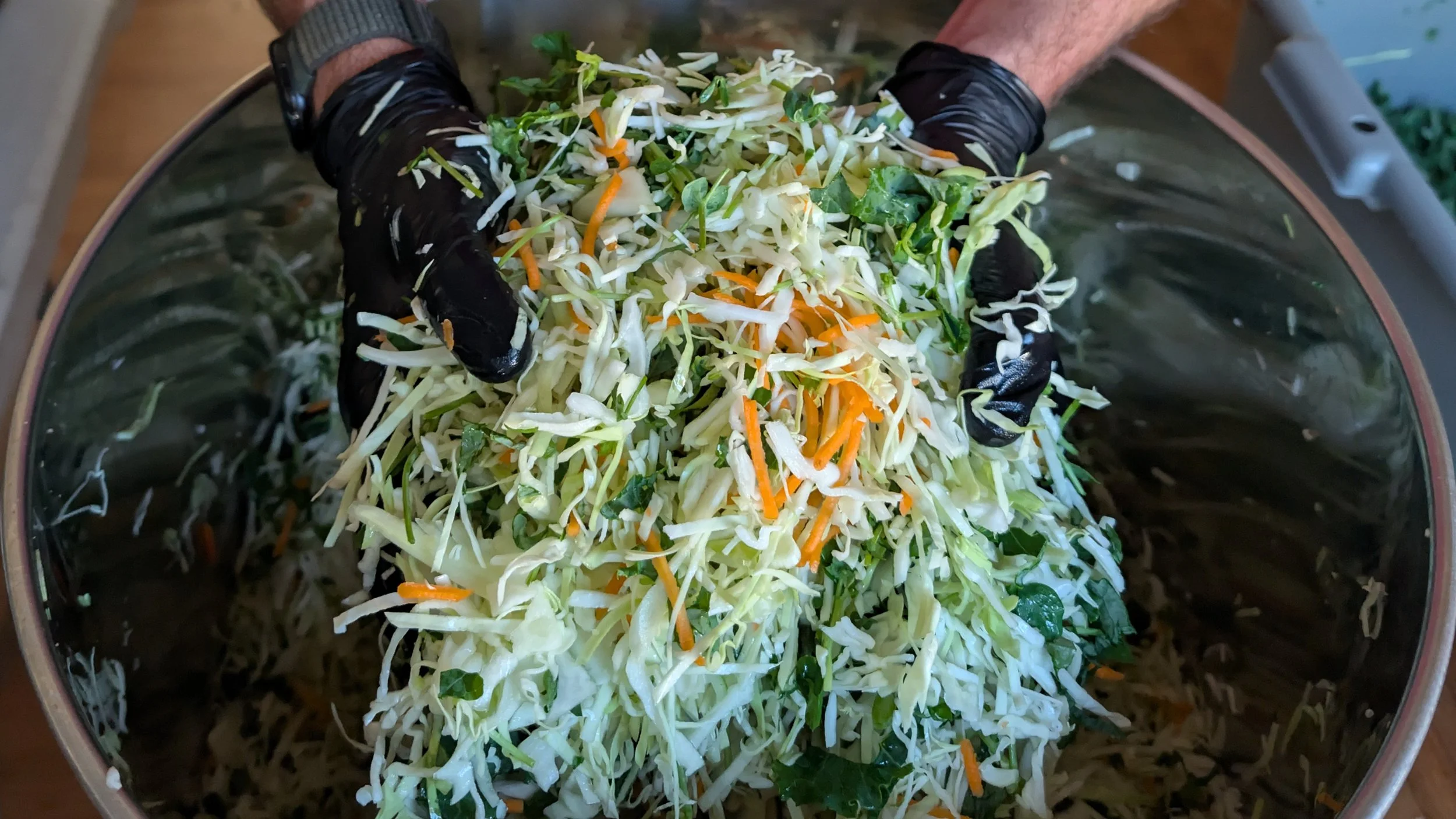Ingredients: Green Cabbage*, Carrot*, Kale*, Pea Microgreens*, Ancient Sea Salt*, & Reverse Osmosis Water. *Organic