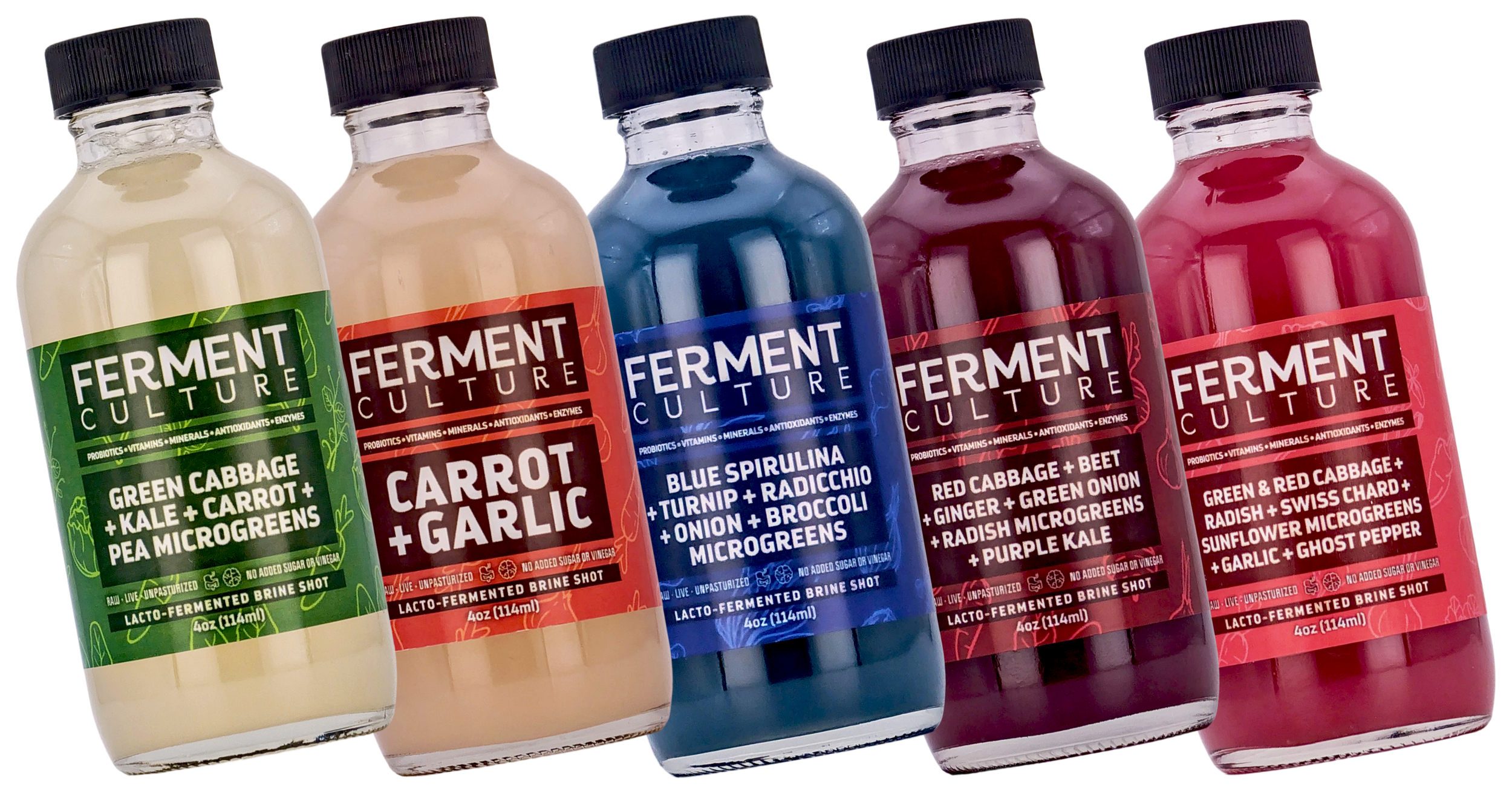 Ingredients: Cabbage*, Turnip*, Radicchio*, Onion*, Broccoli Microgreens*, Blue Spirulina*, Ancient Sea Salt*, & Reverse Osmosis Water. *Organic